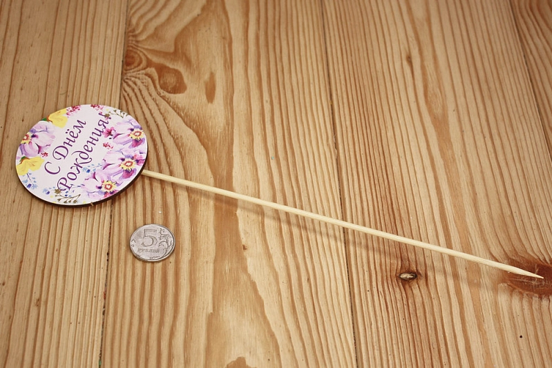 Тп252-02-0000 Топпер "С Днём рождения" в круге, на шпажке (8,3*28) МДФ 3мм, УФ печать, оформл., 1 шт.