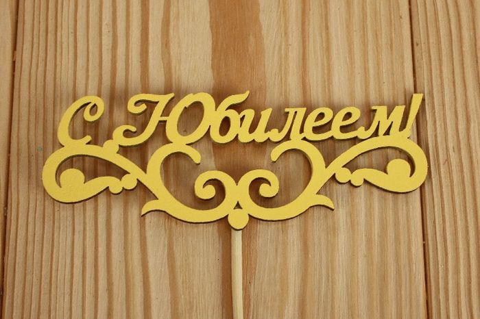 Топпер "С Юбилеем!" с вензелем (12*27) МДФ 3мм, окрашен., оформл., Желтый, 1 шт.