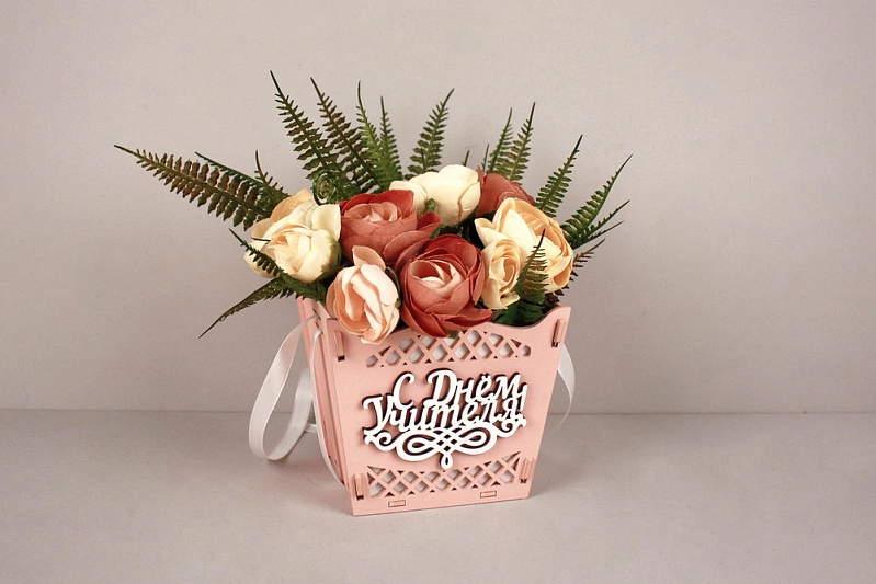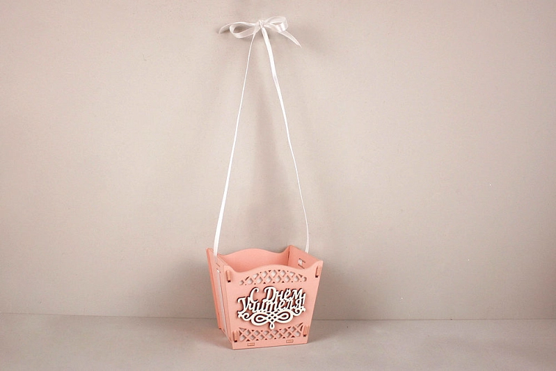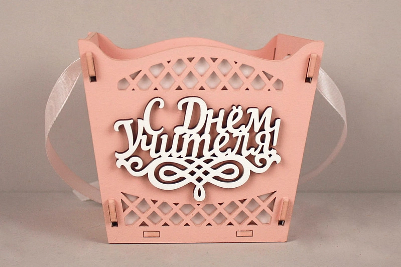 ПУ763-02-4503 Подарочная упаковка-конус "С Днём Учителя!" средняя (12*12*10,5) МДФ 3мм, окрашен., оформл., Пудровый-белый, 1 шт.