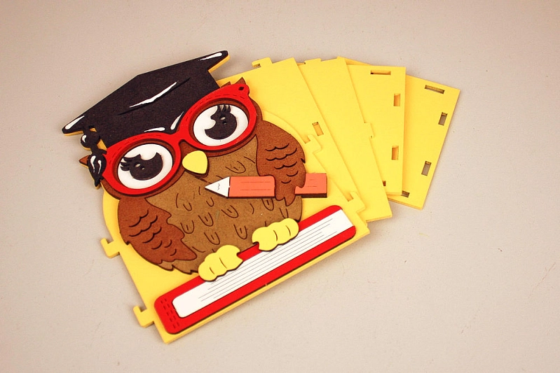 ПУ741-02-1637Нс Подарочная упаковка "Мудрая Сова" (13,5*9,5*17) МДФ, окрашен., оформл., Желтый-Дуб, 1 шт. БЕЗ СБОРКИ