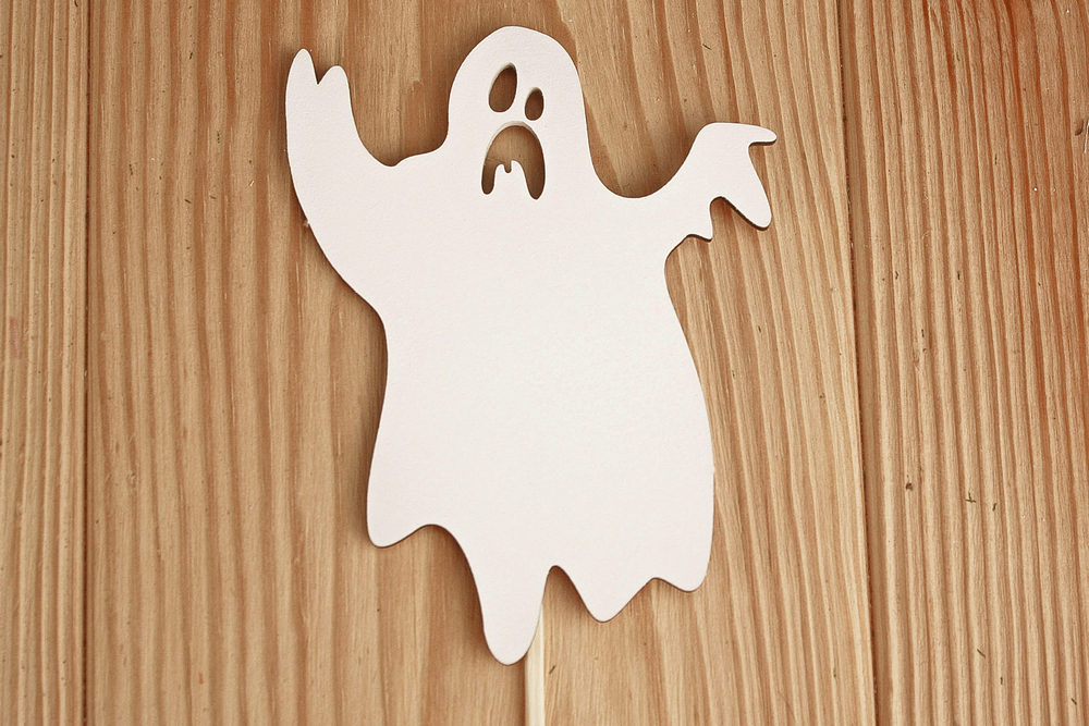 Топпер к Хэллоуину "Привидение" (8*30) МДФ 3мм, окрашен. на шпажке, Белый, Уп-10 шт.