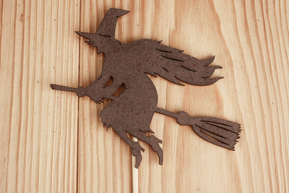 Топпер к Хэллоуину "Ведьма" (11*30) МДФ 3мм, окрашен. морилкой, Эбеновое дерево, 1 шт.
