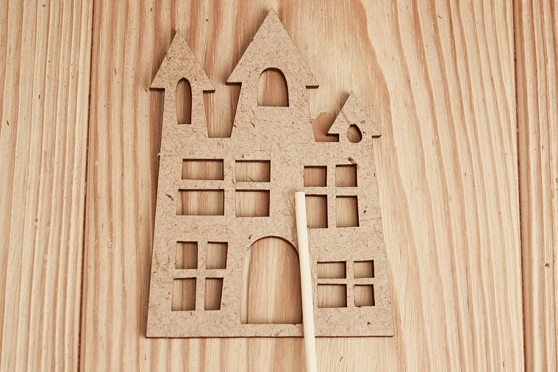 Топпер к Хэллоуину "Замок" (10*30) МДФ 3мм, окрашен. на шпажке, Эбеновое дерево, 1 шт.