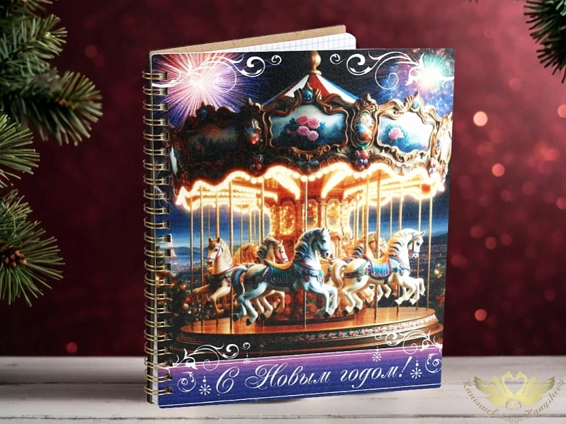 - Уникальный дизайн: Блокнот украшен яркой и детализированной УФ-печатью с изображением новогодней карусели, создающей праздничное настроение.