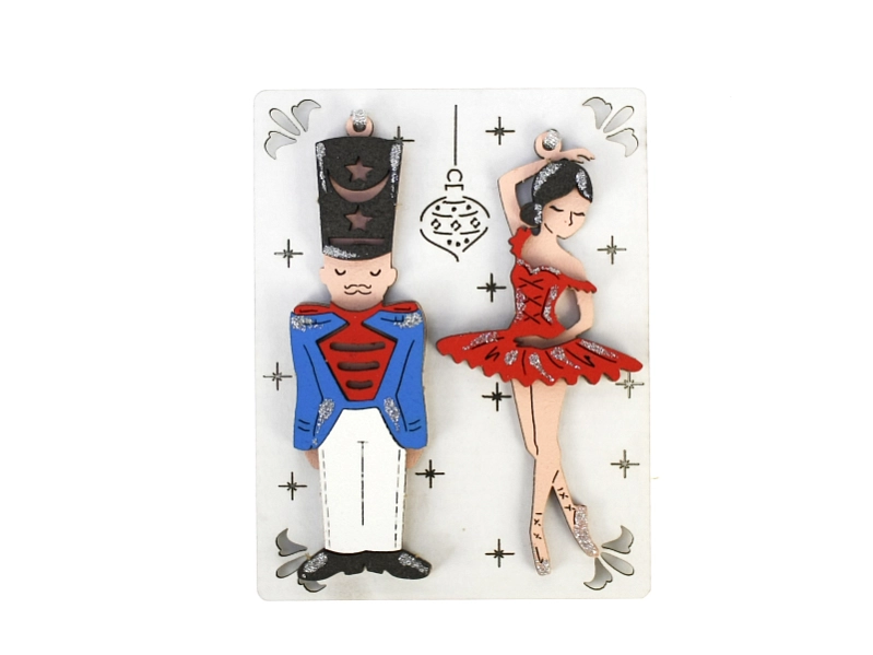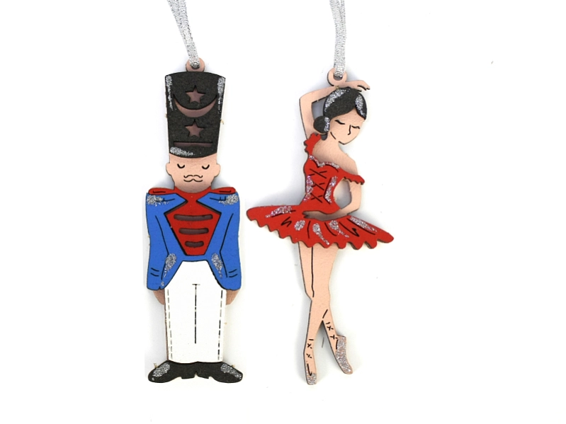 Набор ёлочных украшений "Гусар и балерина". МДФ, окрашен., оформл., Красный-синий, Набор 2 шт