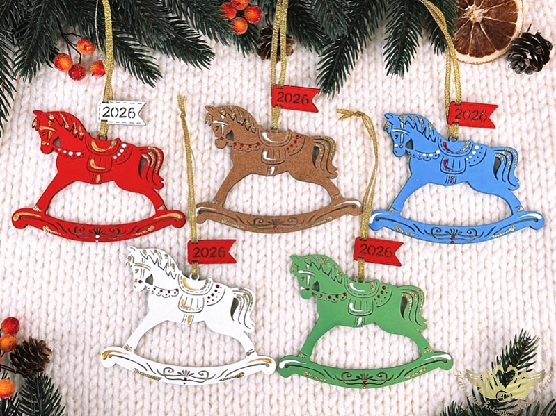 Набор ёлочных украшений "Лошадки. 2026" (11,5*8,5) Ассорти, Набор 5 шт.
