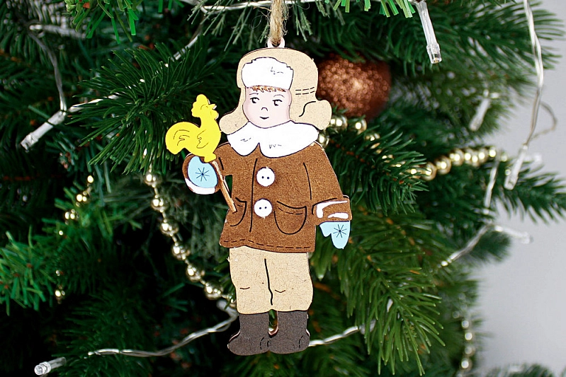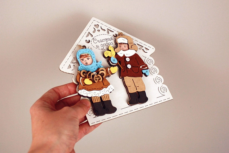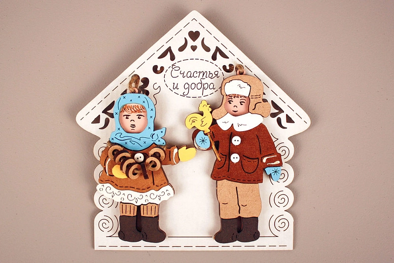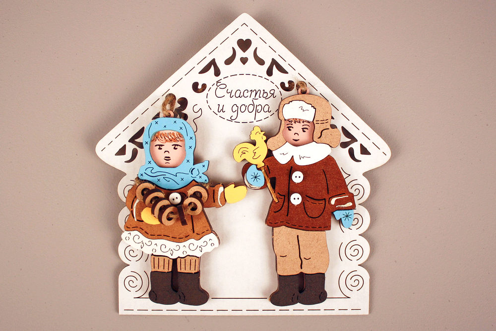 Набор ёлочных украшений "Маша и Витя" в домике. МДФ, окрашен., оформл., Набор 2 шт