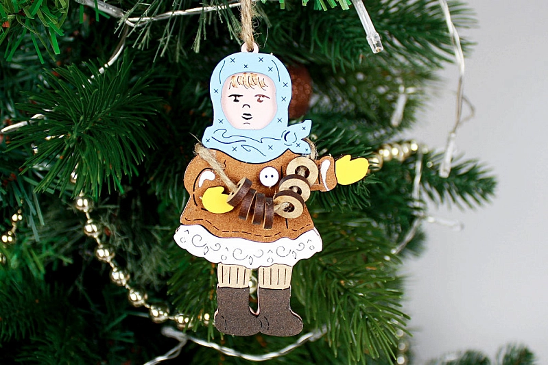 ЛиН17-02-0000 Набор ёлочных украшений "Маша и Витя" в домике. МДФ, окрашен., оформл., Набор 2 шт