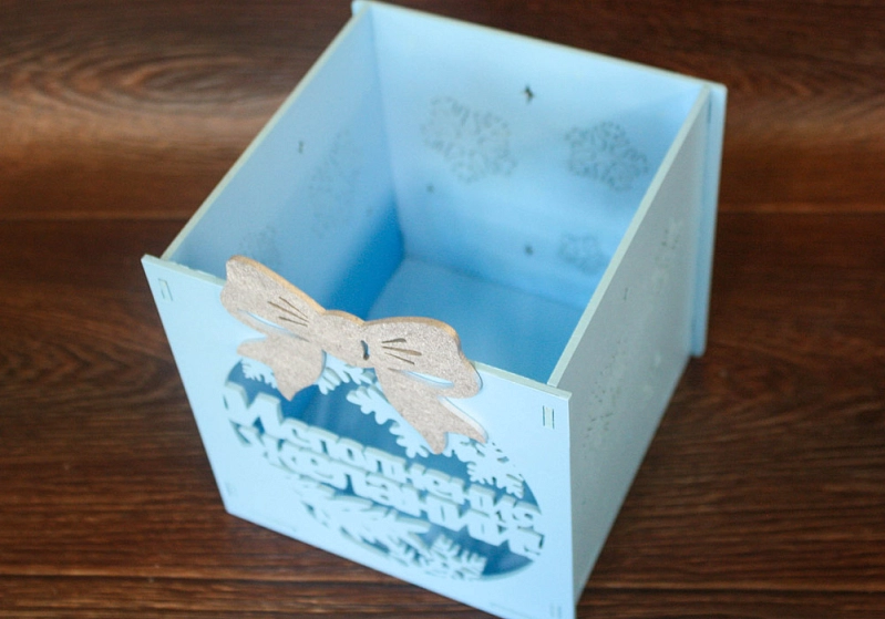 Изготовленная из прочного МДФ толщиной 3 мм, коробка отличается надежностью и долговечностью. 💎 Качественная окраска и оформление в нежном сочетании голубого и серебра придают ей элегантный и праздничный вид. 🎀 Бант завершает образ, делая коробку еще более привлекательной.