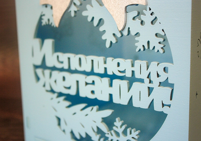 ПУ136-02-0702 Подарочная коробка "Исполнения желаний!" с бантом (15*15*15) МДФ,окрашен,оформл.,Голубой-серебро,1шт