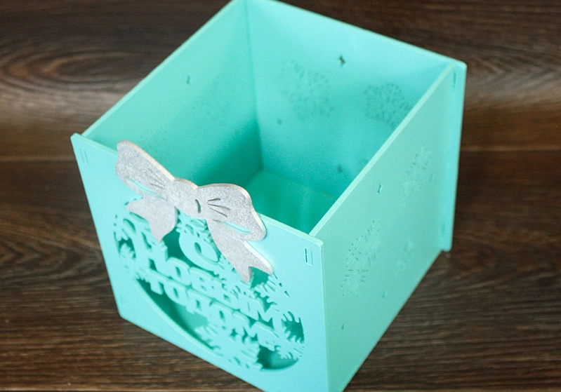 ПУ134-02-2602 Подарочная коробка "С Новым годом!" с бантом (15*15*15) МДФ, окрашен., оформл.,Тиффани-серебро, 1 шт