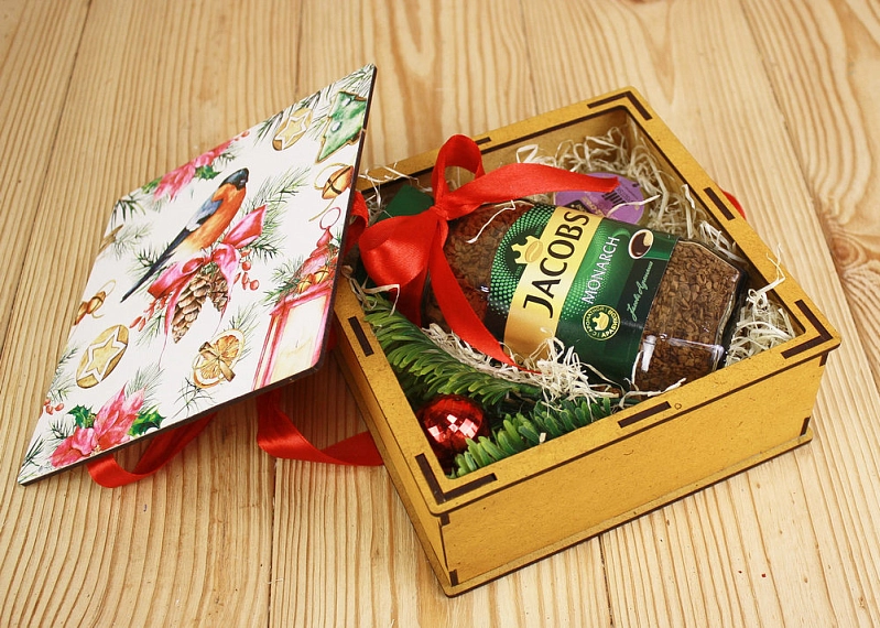 Подарочная коробка со снегирём – яркий акцент вашего подарка! 🎁