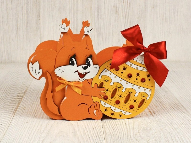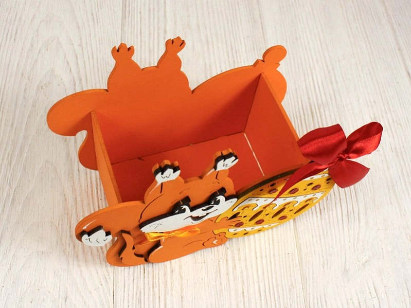 Изготовленная из качественного МДФ, эта упаковка не только красива, но и прочна. Яркий оранжево-желтый цвет и забавный дизайн с белочкой и шаром создают атмосферу радости и веселья.