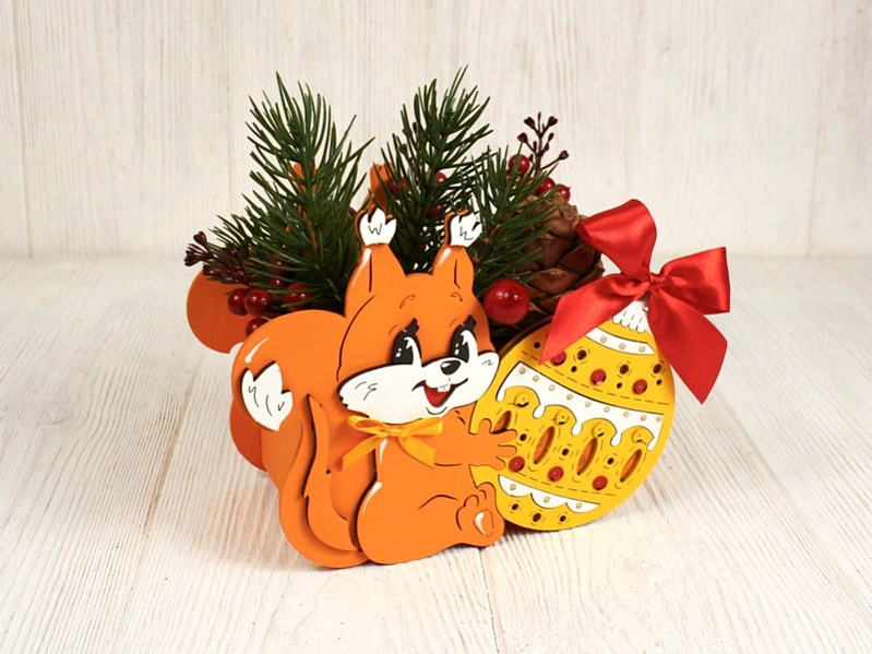 ПУ813-02-1516 Подарочная упаковка "Белочка с шаром" (18,5*9*14,5) МДФ, окрашен., оформл., Оранжевый-желтый, 1 шт.