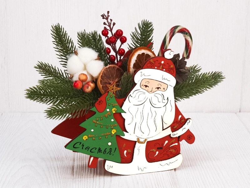 Эта очаровательная подарочная упаковка в форме Деда Мороза с ёлкой станет прекрасным дополнением к любому подарку и подарит незабываемые эмоции вашим близким! 🎉 Изготовленная из прочного МДФ, она не только красива, но и долговечна.