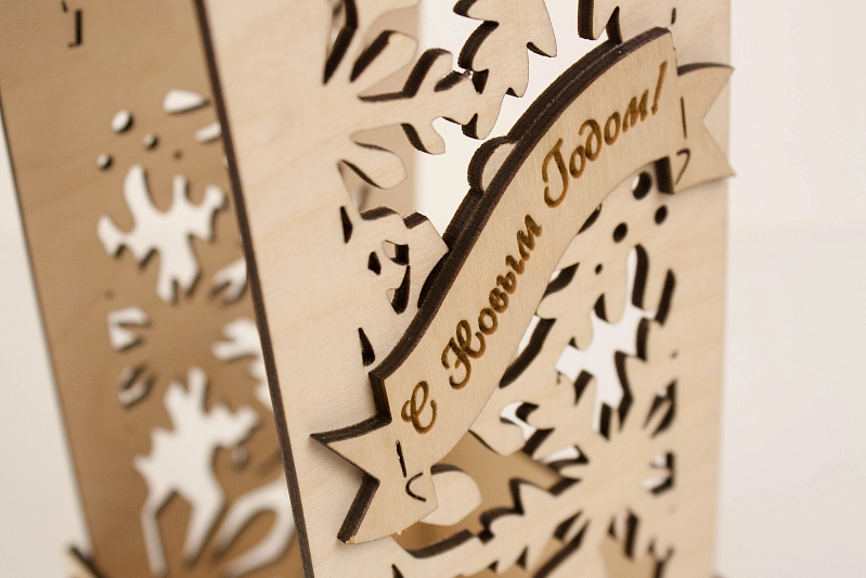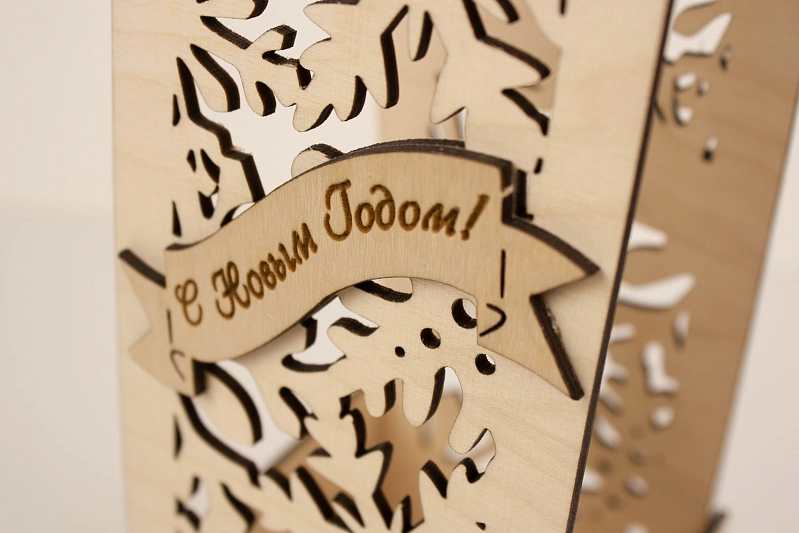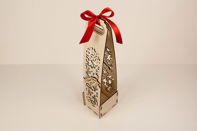 ПУ266-00-0006 Подарочная упаковка для шампанского "С Новым годом!" (10*10,5*39) Фанера 3мм, неокраш., оформл., 1 шт.