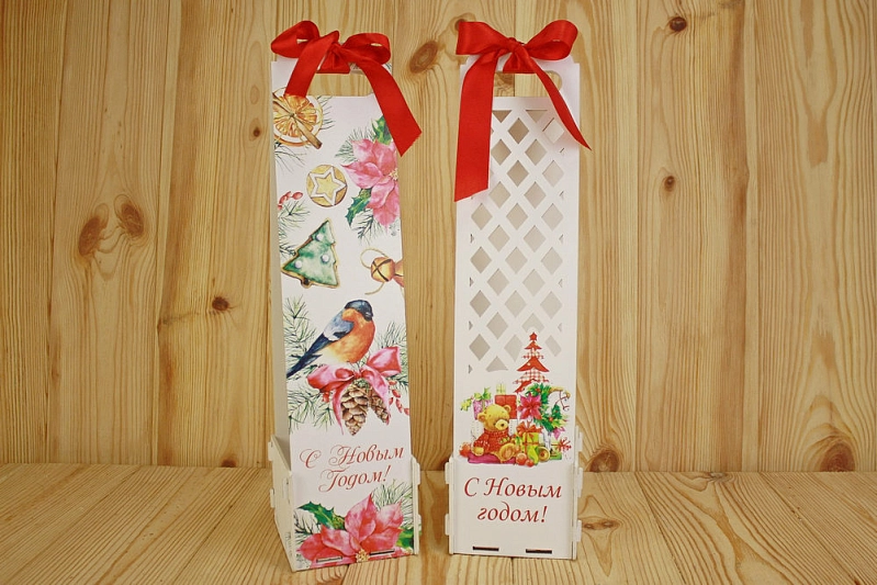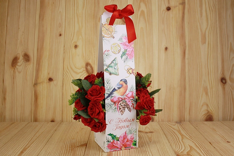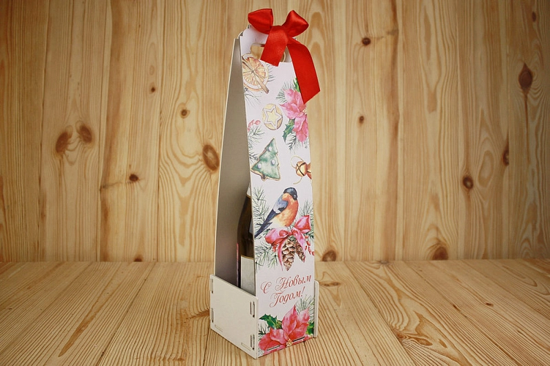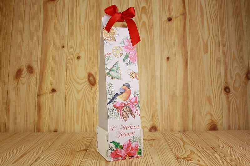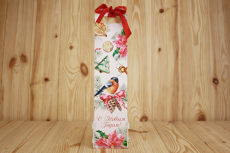 Подарочная упаковка для шампанского "С Новым Годом!" со снегирём