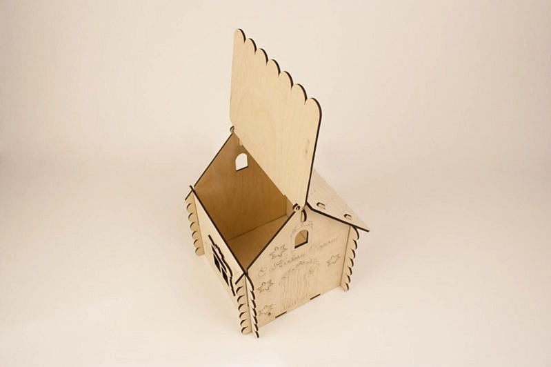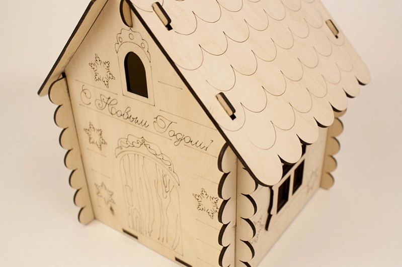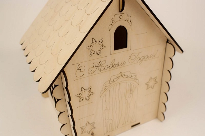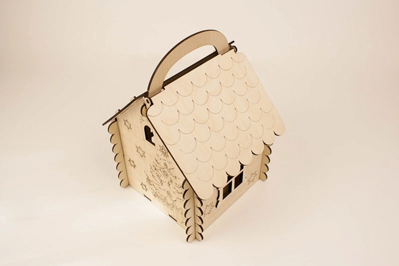 ПУ203-00-0000 Подарочная упаковка Домик" с ручкой (19*17*25) Фанера 3мм, неокраш., оформл., 1 шт.