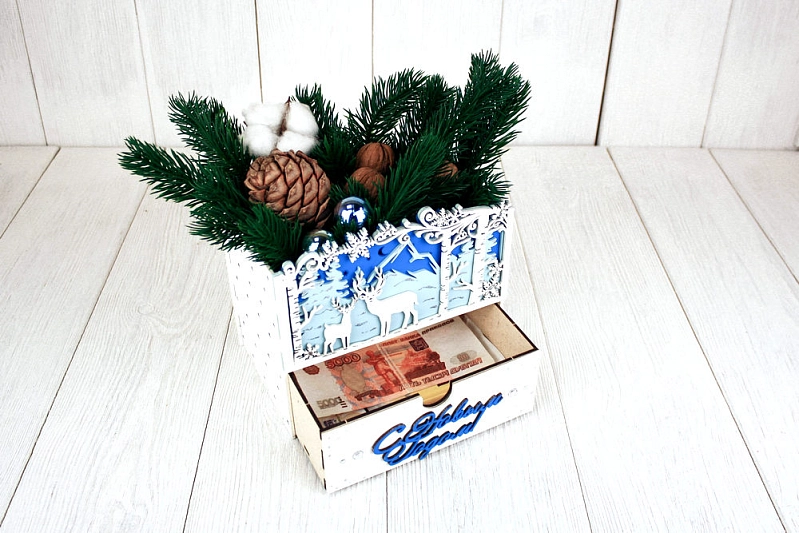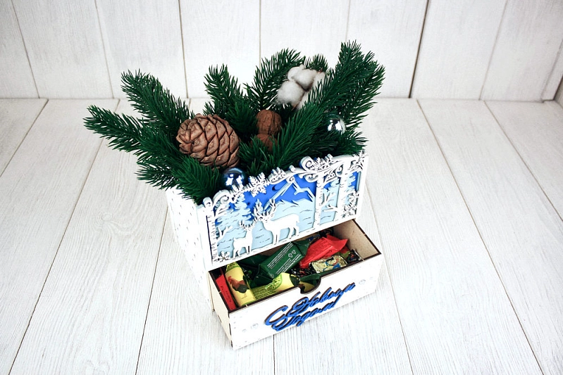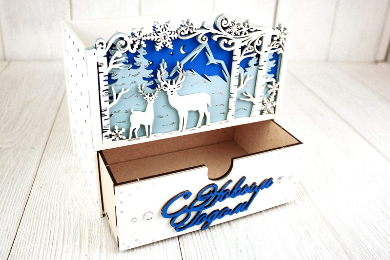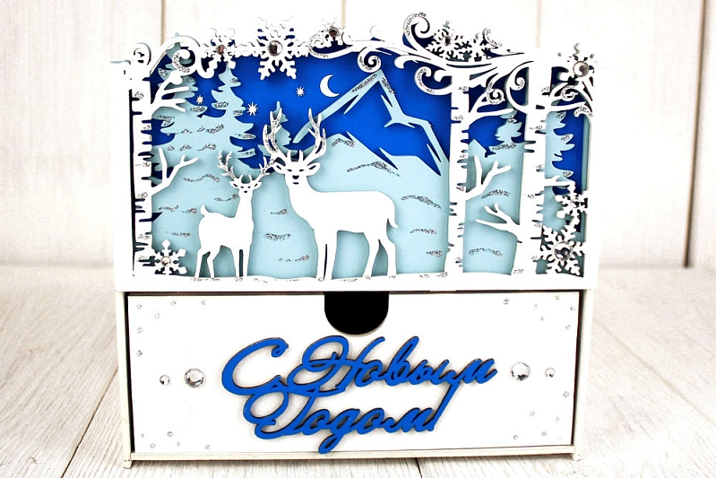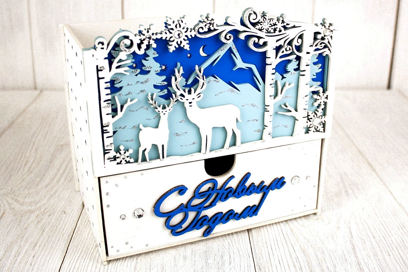 Подарочная упаковка-комод "Олени в зимнем лесу" - идеальное решение для особенных моментов! 🎁