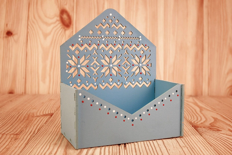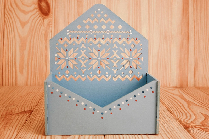 ПУ554-02-0700 Подарочная упаковка-конверт "Норвежский" (16,5*9,3*19,5) МДФ 3мм, окрашен., оформл., Голубой, 1 шт.