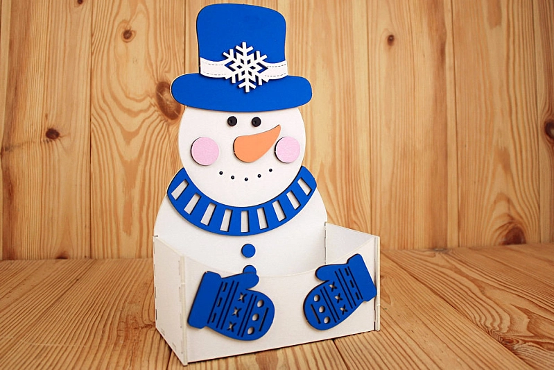 ПУ723-02-0308 Подарочная упаковка-конверт "Снеговик" (16,5*9,3*28) МДФ 3мм, окрашен., оформл., Белый-синий, 1 шт.