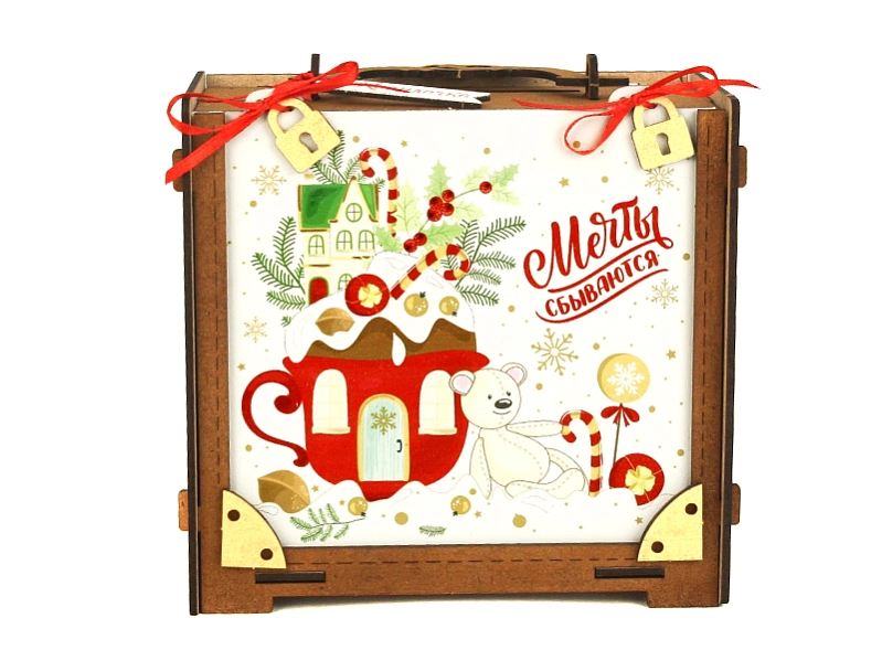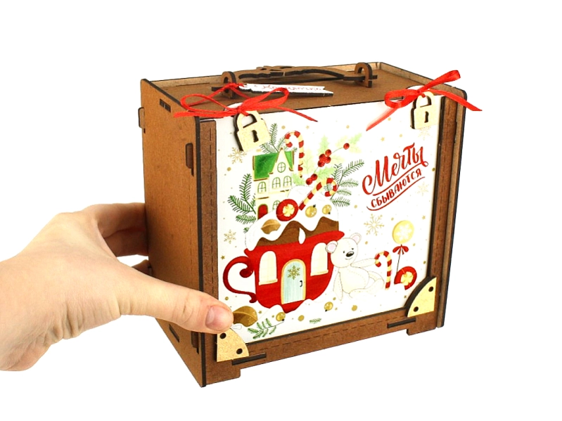 Уникальный дизайн, выполненный с помощью УФ-печати и окрашивания морилкой, делает эту упаковку по-настоящему особенной. Яркие краски и детализированное изображение создают праздничное настроение. 🎄