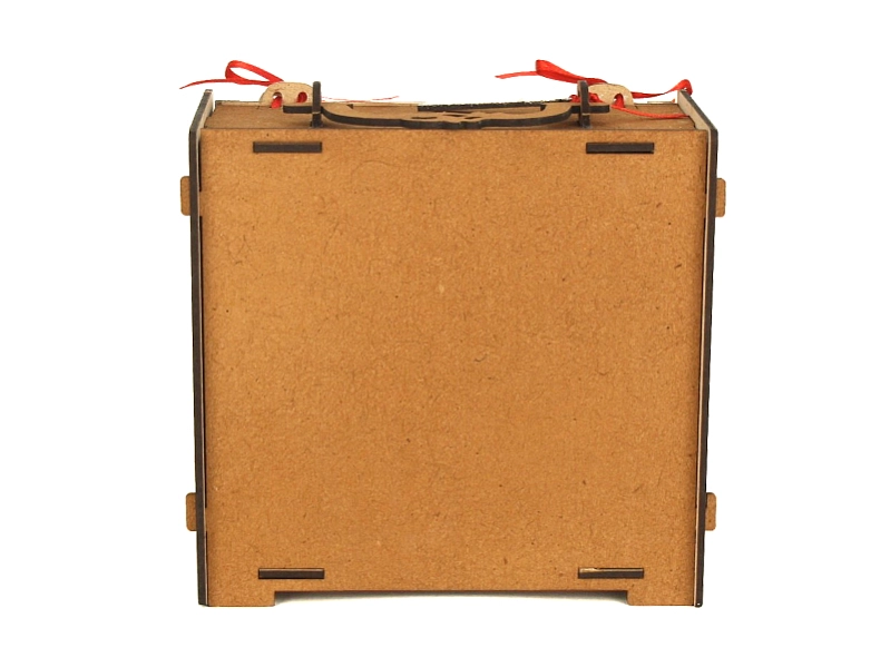 - Оформление: УФ-печать обеспечивает четкость и стойкость изображения, а окрашивание морилкой придает упаковке благородный вид.
