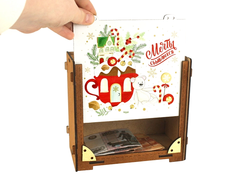 Эта очаровательная упаковка-копилка станет прекрасным дополнением к любому подарку и подарит незабываемые эмоции! 🎁 Изготовленная из качественного МДФ, она сочетает в себе прочность и изысканный внешний вид.