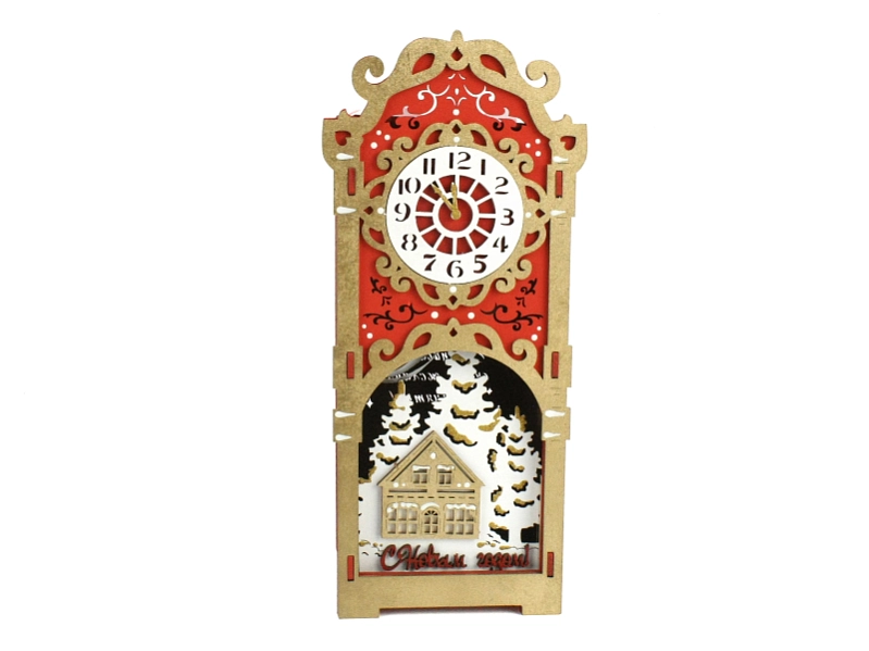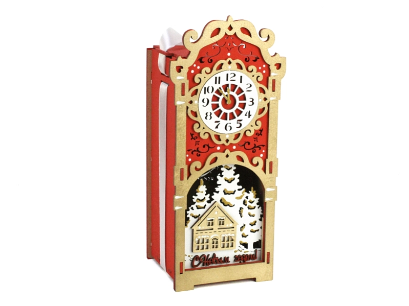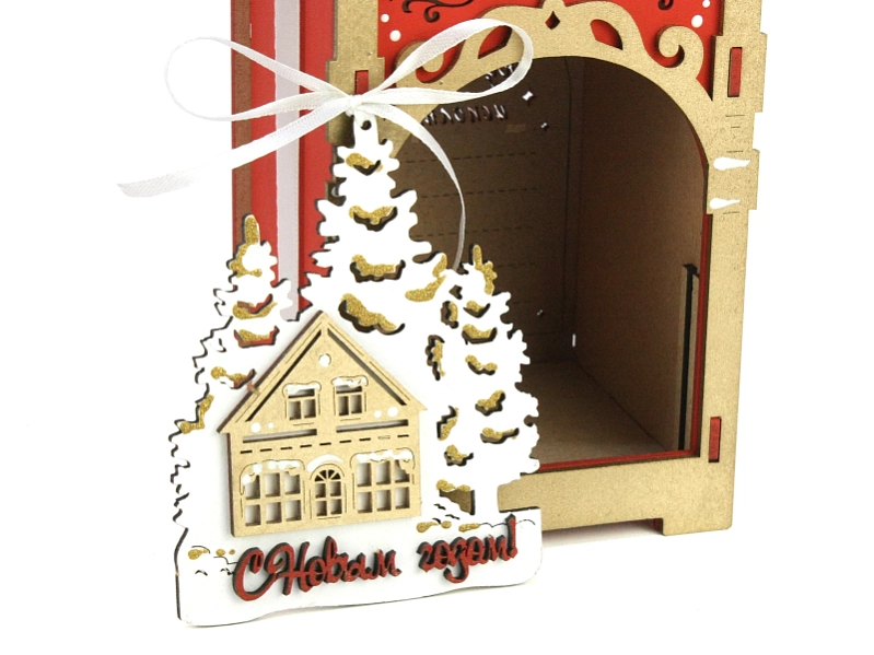 ПУ876-02-0601 Подарочная упаковка-кормушка, с ёлочной игрушкой (12*10*27) МДФ, окрашен., оформл., Красный-золото, 1 шт.