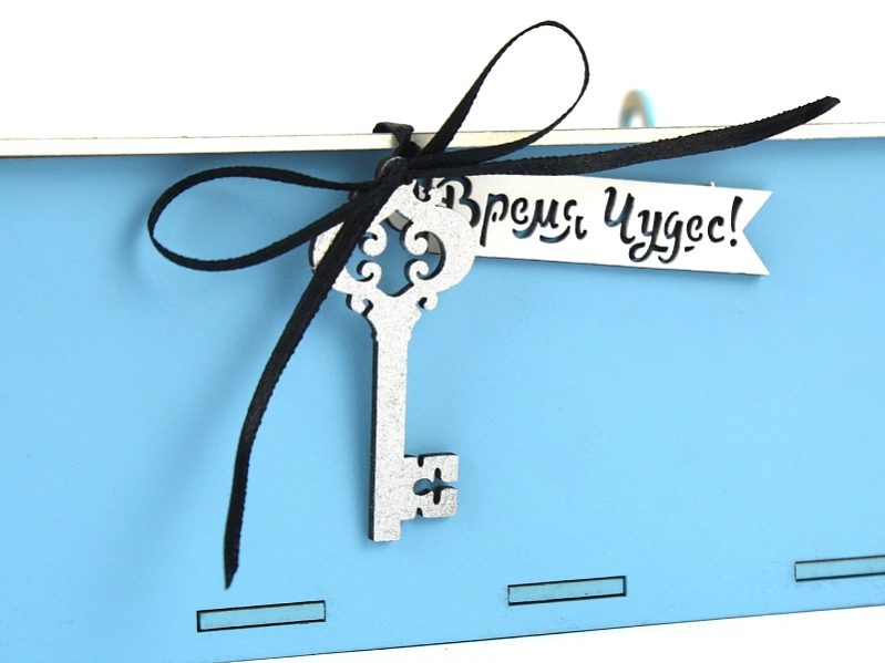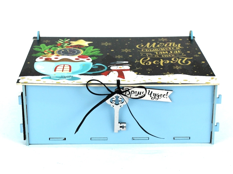 ПУ847-02-0702 Подарочная упаковка "Мечты сбываются" (24*19,5*9) МДФ, УФ печать, окраш., оформл., Голубой-серебро, 1 шт.
