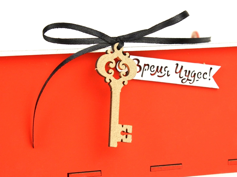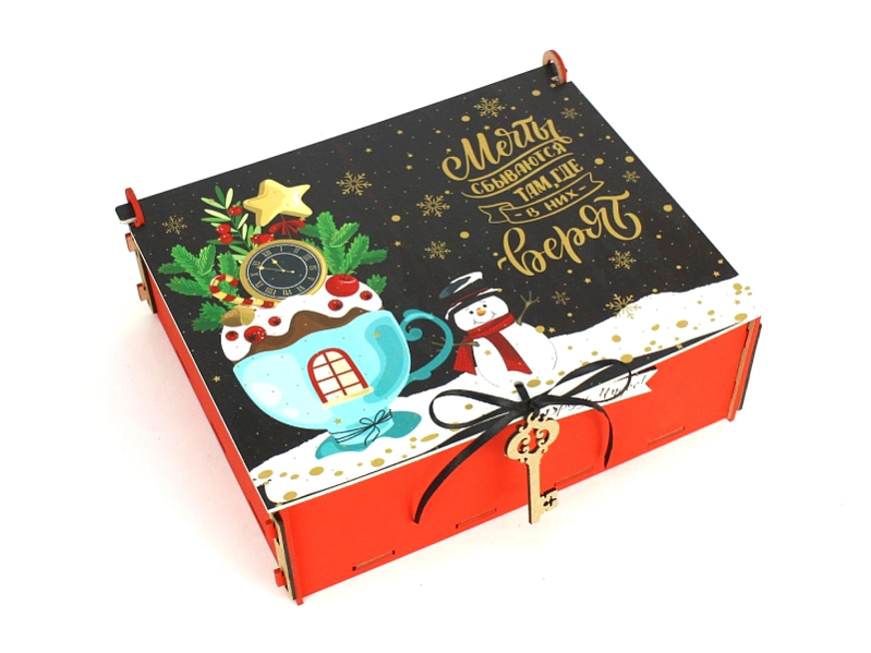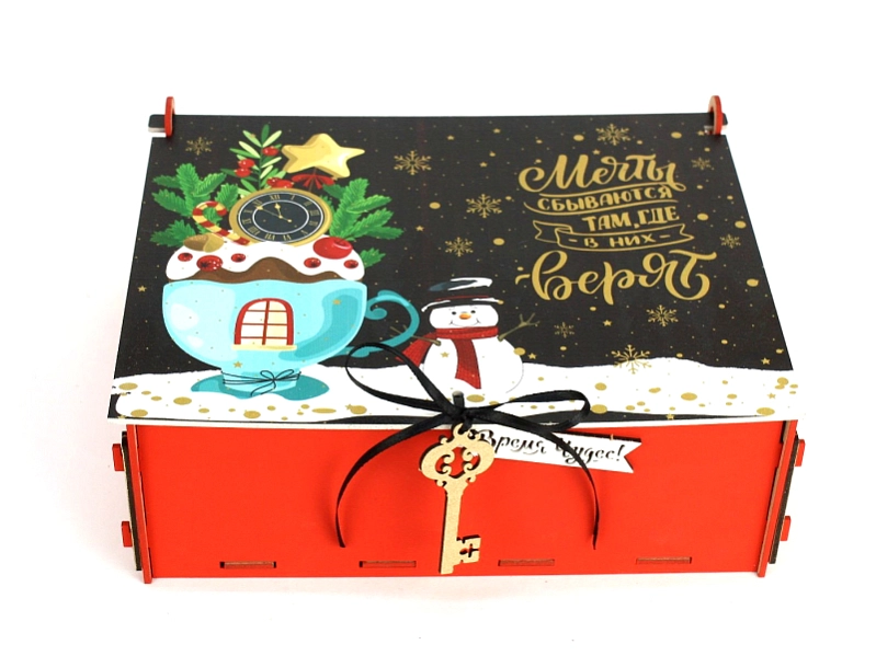 ПУ847-02-0601 Подарочная упаковка "Мечты сбываются" (24*19,5*9) МДФ, УФ печать, окраш., оформл., Красный-золото, 1 шт.