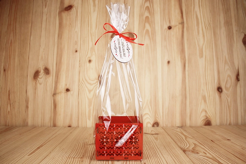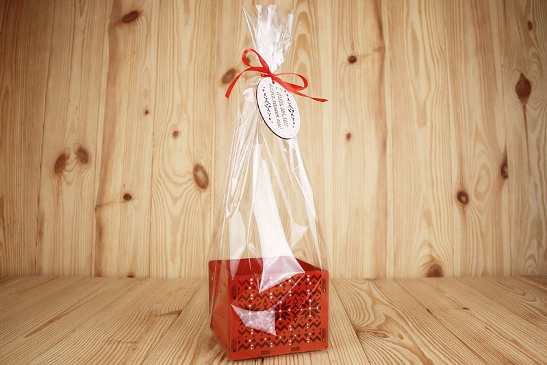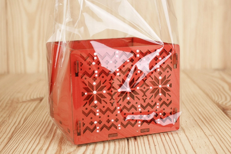 ПУ593-02-0606 Подарочная упаковка "Норвежская" в пакете (12*12*9,5см; выс.пакета 44см) МДФ 3мм, окрашен., оформл., Красный, 1 шт.