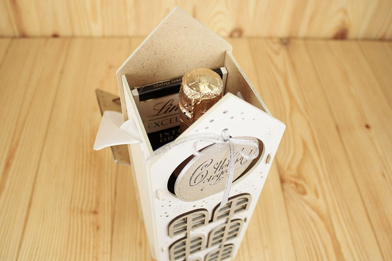 Эта великолепная подарочная упаковка в форме новогоднего домика станет идеальным обрамлением для ваших подарков! 🎉 Изготовленная из прочного МДФ толщиной 3 мм, она надежно защитит содержимое и добавит праздничное настроение.