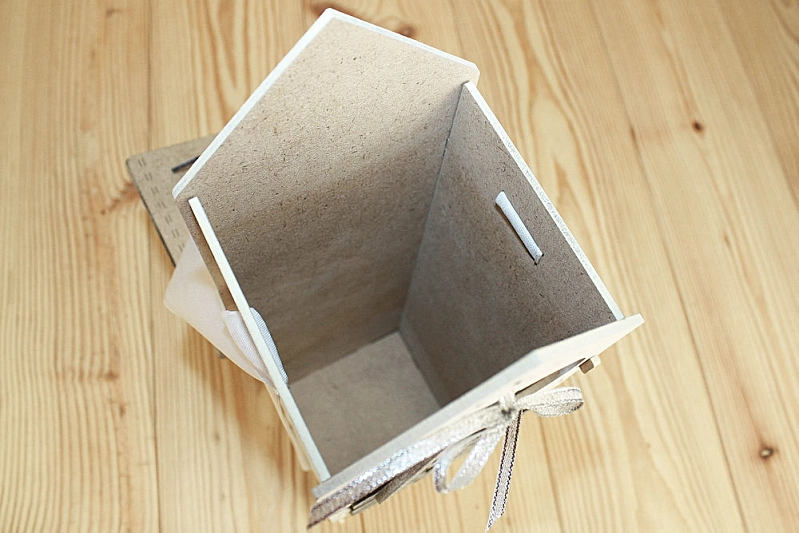 ПУ590-02-0302 Подарочная упаковка "Новогодний домик" большой (13,5*11,5*36,5) МДФ 3мм, окрашен., оформл., Белый-серебро, 1 шт.