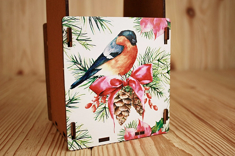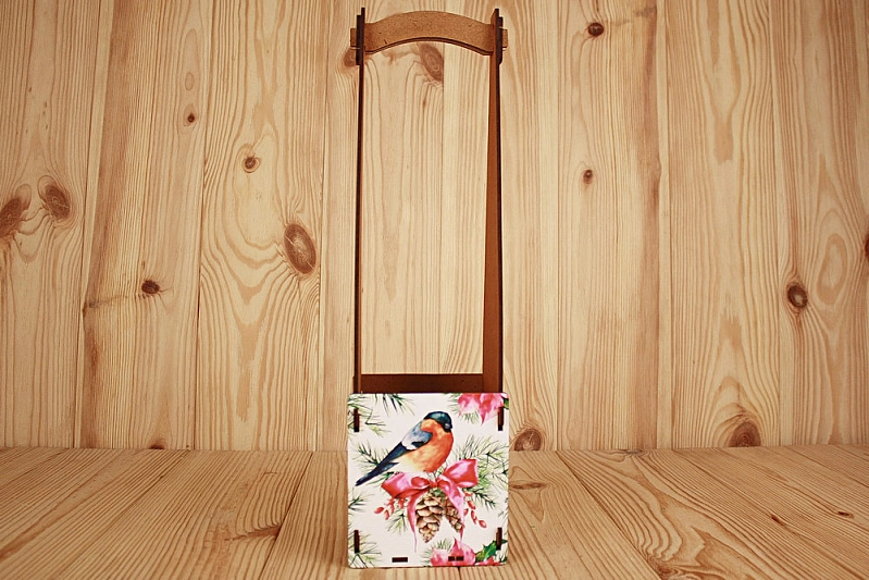 - Оформление: Украшена ярким и красочным рисунком снегиря, выполненным с помощью УФ-печати. ❄️ Дополнительно обработана морилкой и декорирована, что придает ей благородный вид.