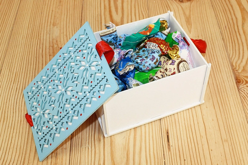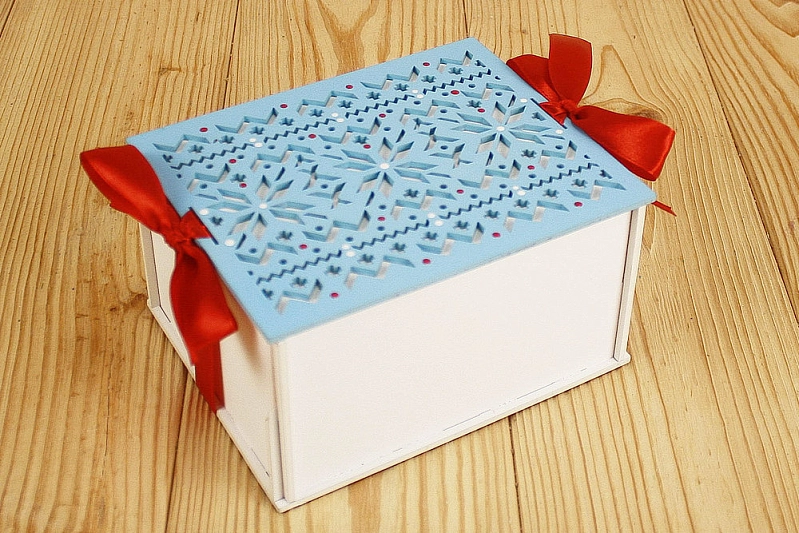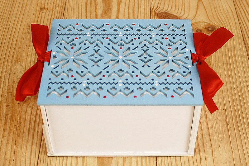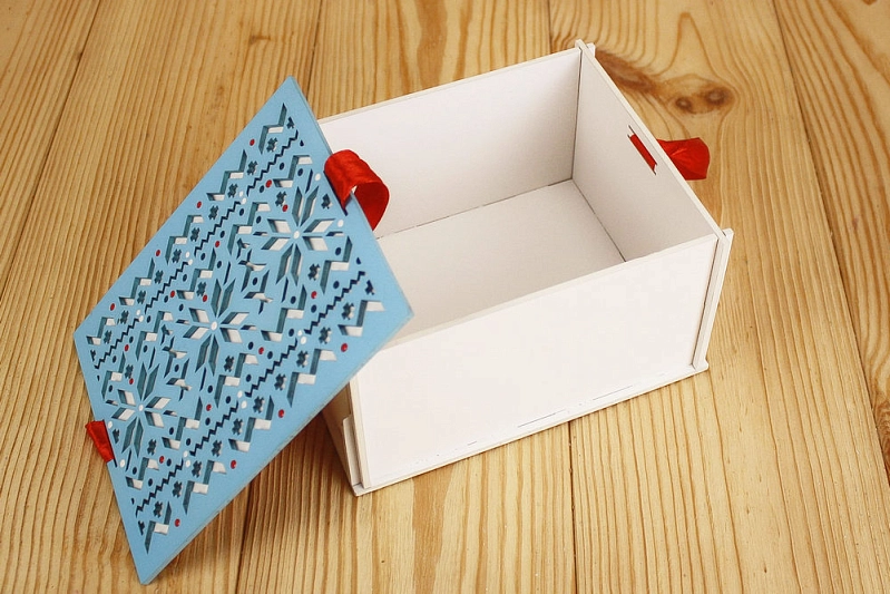 ПУ553-02-0307 Подарочная упаковка-посылка "Норвежская" (16*13*8,7) МДФ 3мм, окрашен., оформл., Белый-голубой, 1 шт.