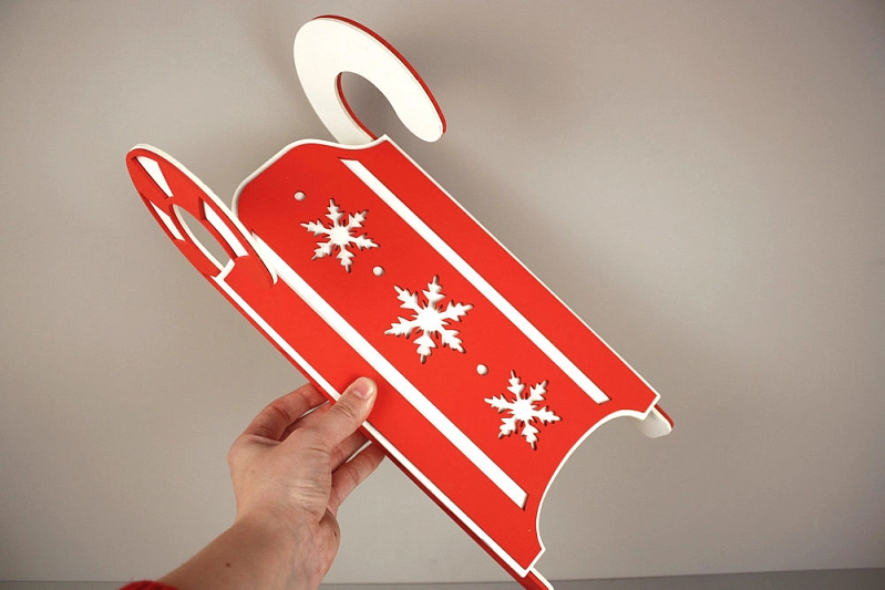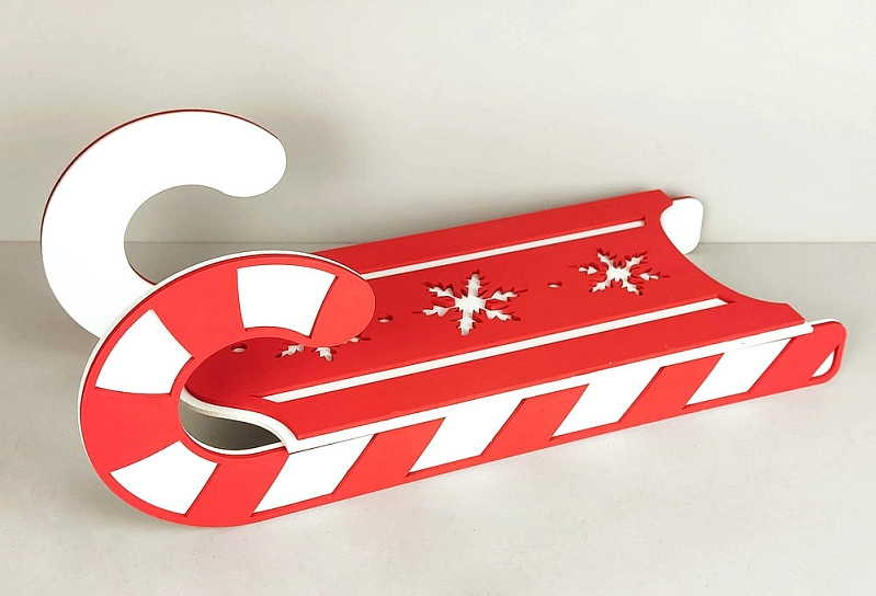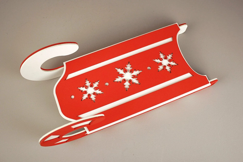 ПУ775-02-0306 Подарочная упаковка "Салазки" большие (37*16*13,5) МДФ, окрашен., оформл., Белый-красный, 1 шт.