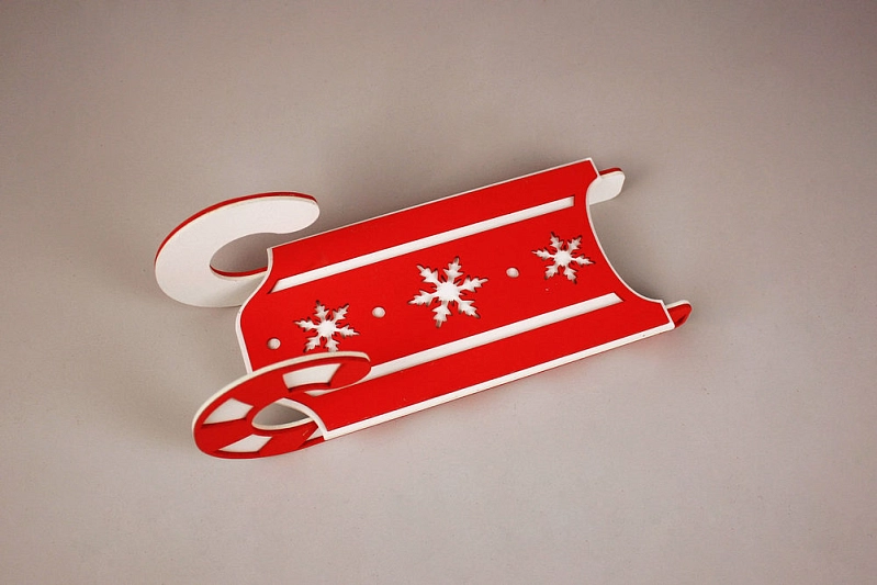 ПУ773-02-0306 Подарочная упаковка "Салазки" малые (26*11*9,5) МДФ, окрашен., оформл., Белый-красный, 1 шт.