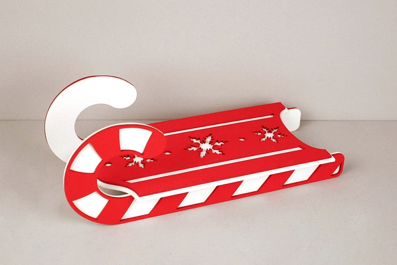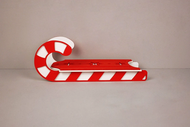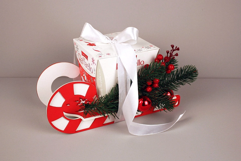 Яркое сочетание белого и красного цветов создаёт праздничное настроение, а изящный дизайн в виде санок идеально подходит для новогодних и рождественских подарков. ✨