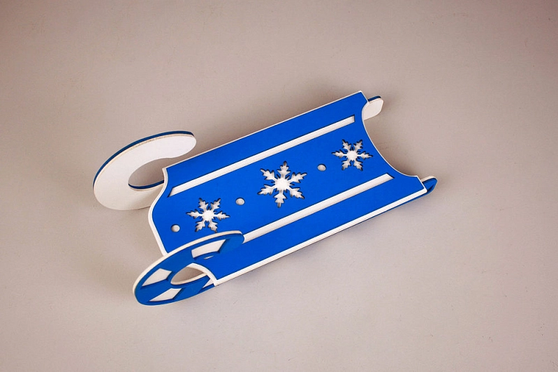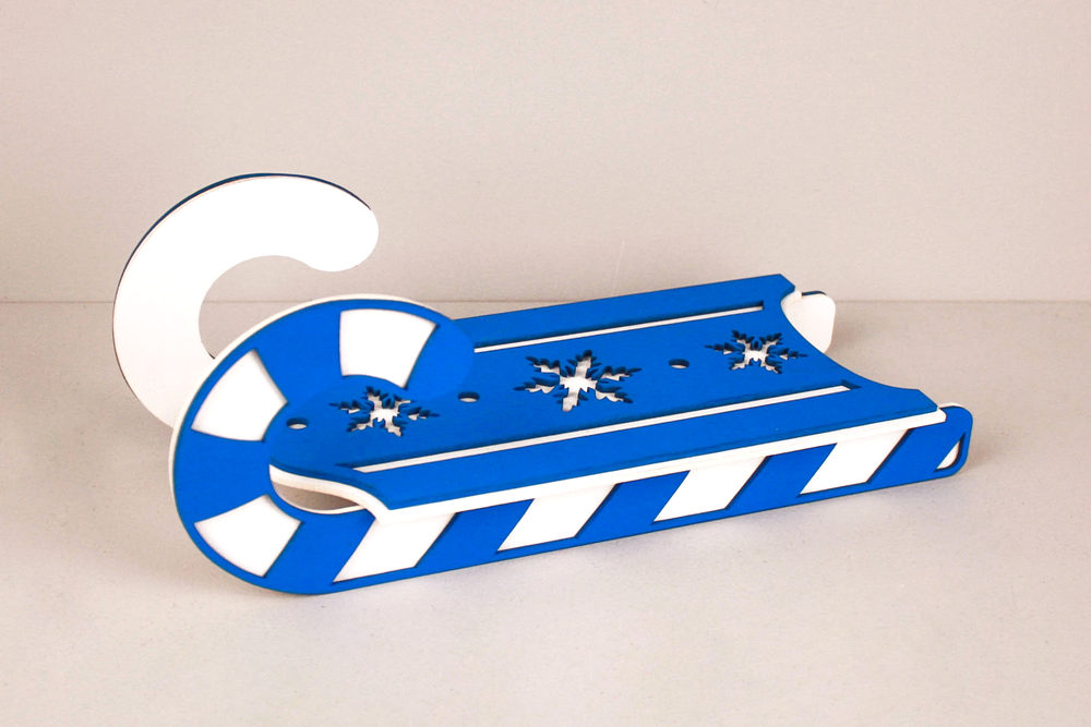 ПУ773-02-0308 Подарочная упаковка "Салазки" малые (26*11*9,5) МДФ, окрашен., оформл., Белый-синий, 1 шт.
