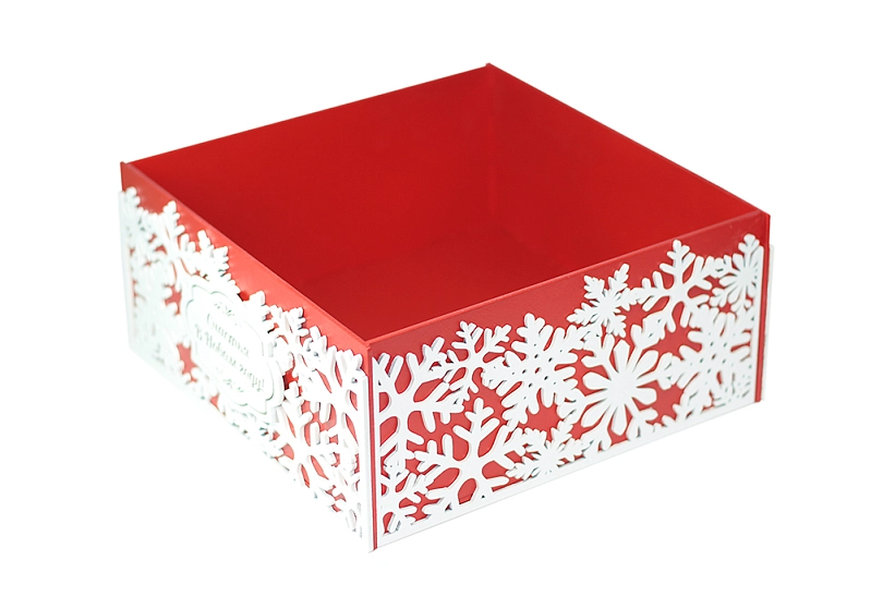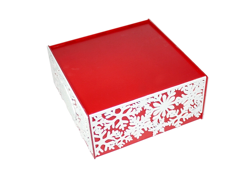 ПУ212-02-0603 Подарочная упаковка со снежинками "Счастья в Новом году!" (25*25*11,5) МДФ 3мм, окрашен., оформл., Красный-белый, 1 шт.