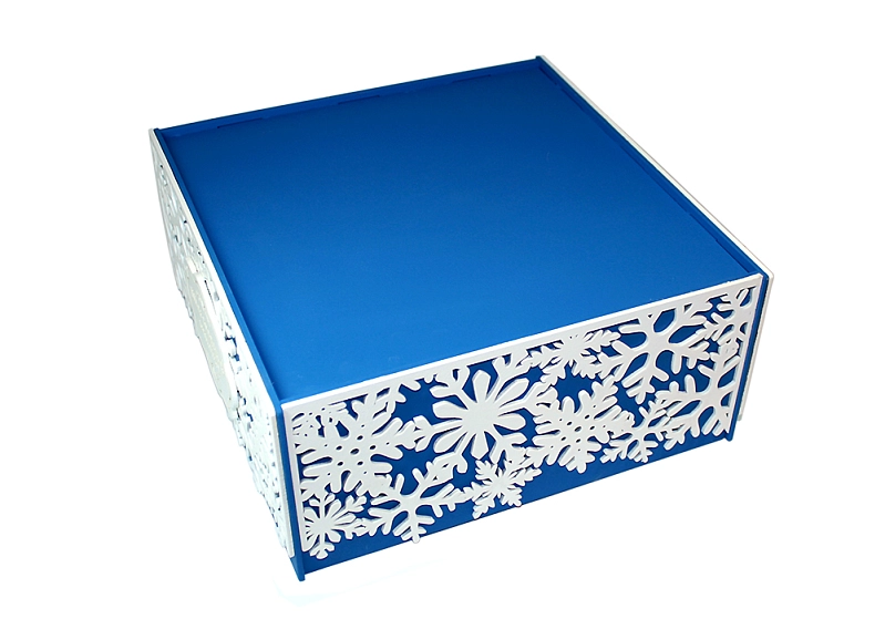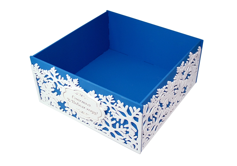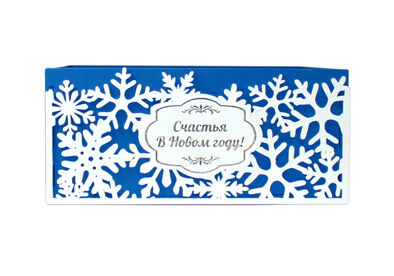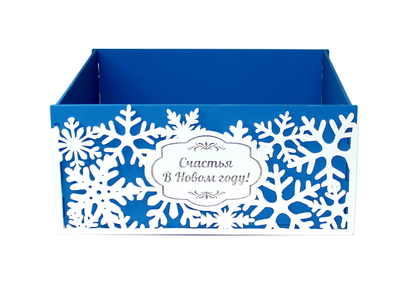 ПУ212-02-0803 Подарочная упаковка со снежинками "Счастья в Новом году!" (25*25*11,5) МДФ 3мм, окрашен., оформл., Синий-белый, 1 шт.