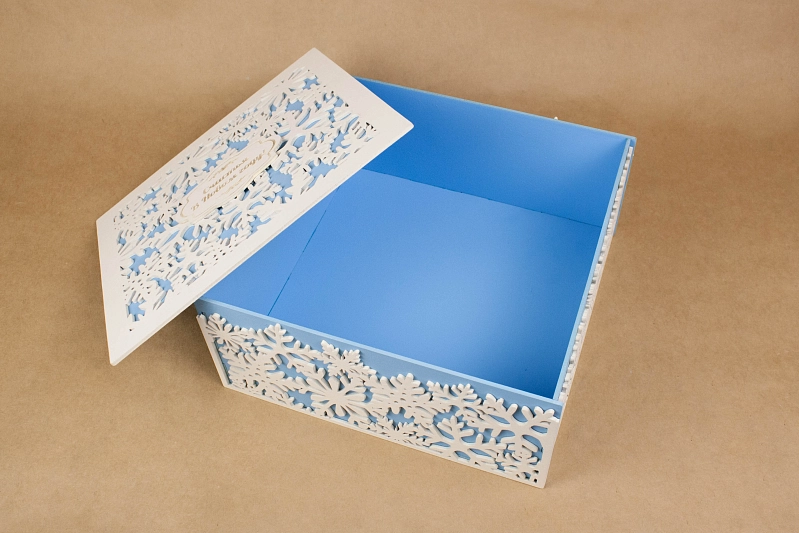 Изготовленная из прочного МДФ толщиной 3 мм, эта коробка не только красива, но и надежна. ❄️ Она выдержит транспортировку и сохранит содержимое в целости и сохранности. 💙 Бело-голубая цветовая гамма и изящный дизайн со снежинками создают ощущение зимней сказки и праздничного настроения. 🎁