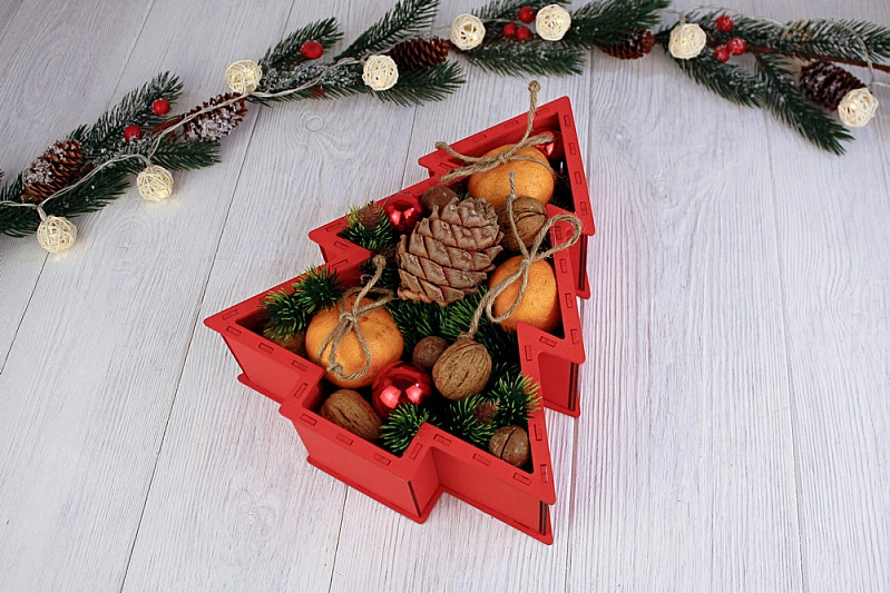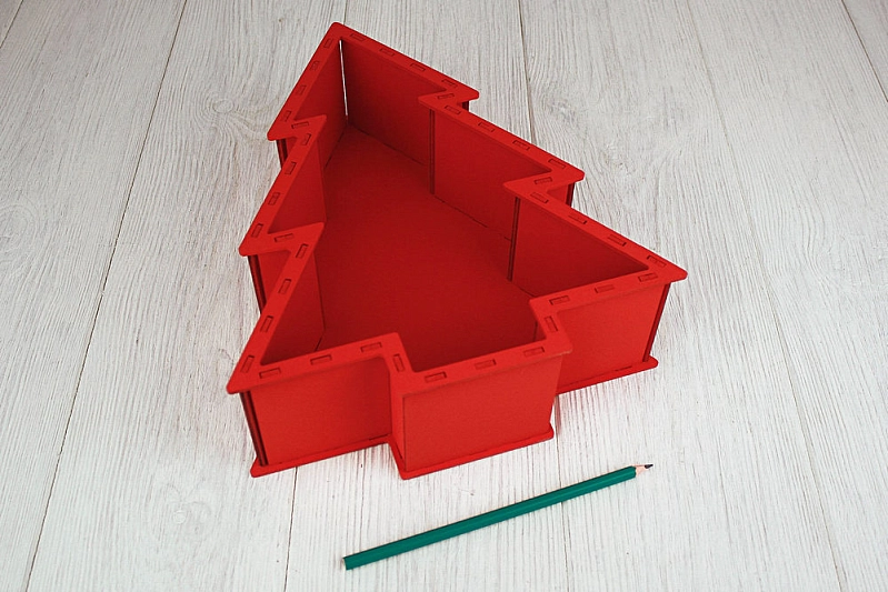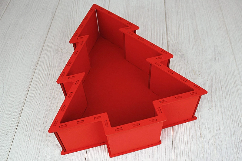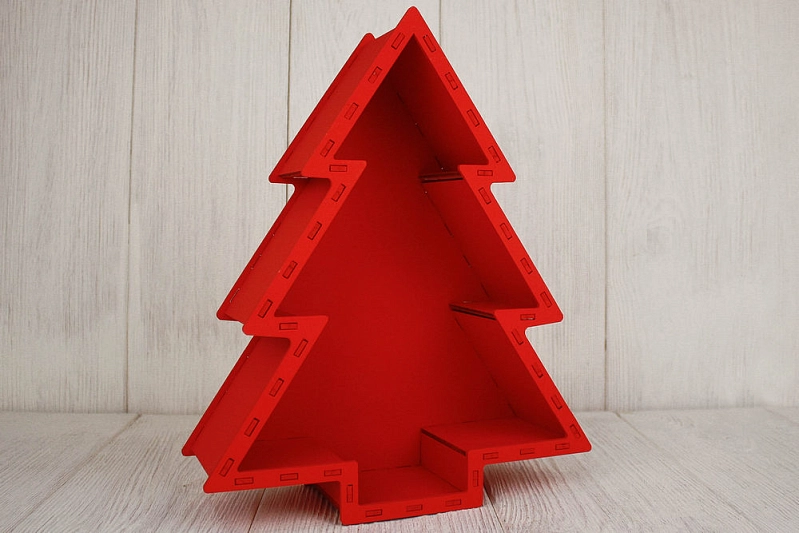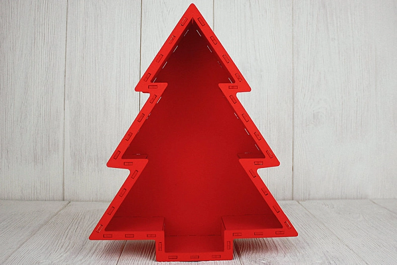 ПУ685-02-0606 Подарочная упаковка "Ёлка" (24,5*8,5*29,5) МДФ 3мм, окрашен., Красный, 1 шт.
