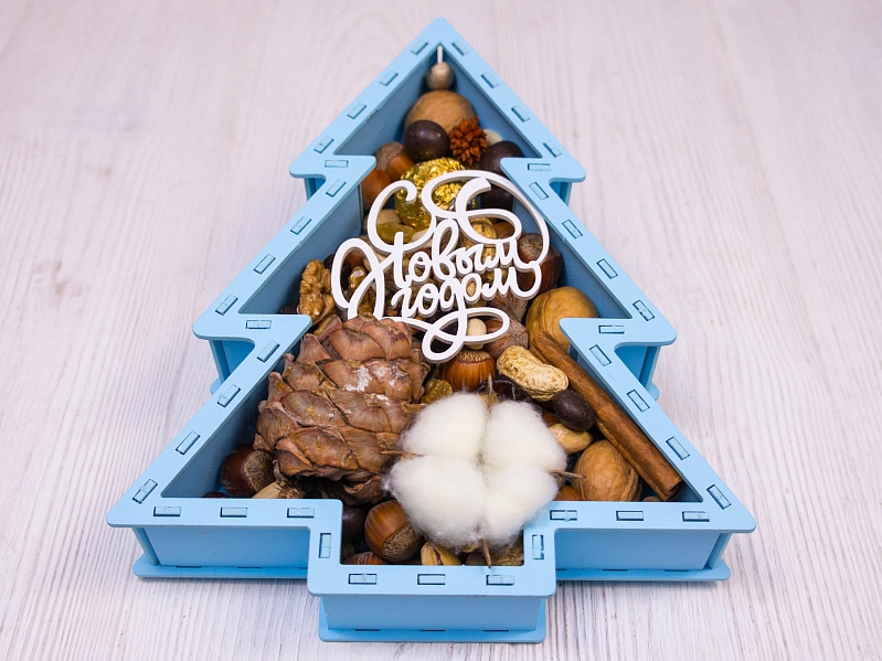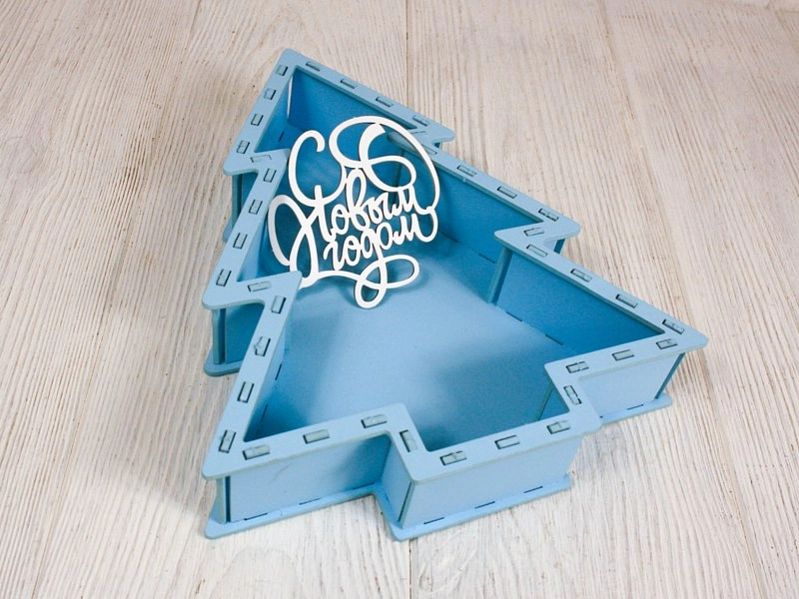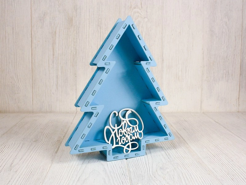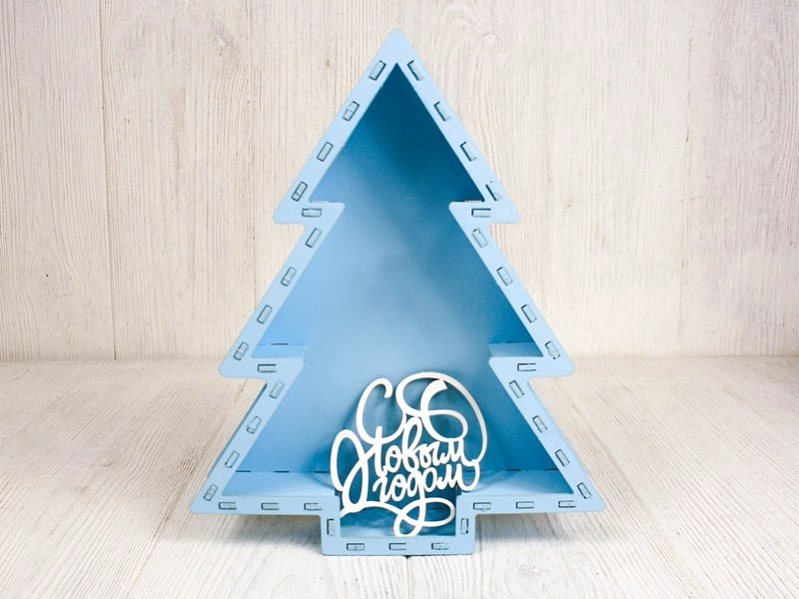 ПУ817-02-4603 Подарочная упаковка-ёлка с топпером "С Новым годом!" (21,5*26*4,5; топпер 8,5*9) МДФ, окрашен., оформл., Голубой пастель-белый, 1 шт.