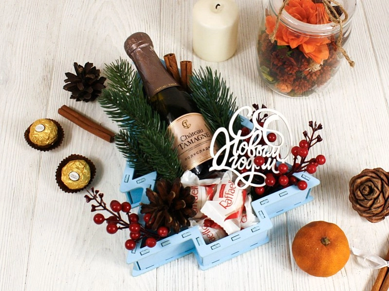 - Топпер: В комплекте идёт красивый топпер с надписью «С Новым годом!» размером 8,5*9 см, который добавит упаковке ещё больше праздничности.