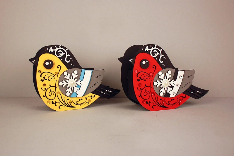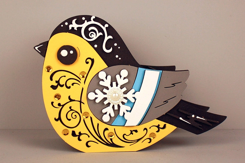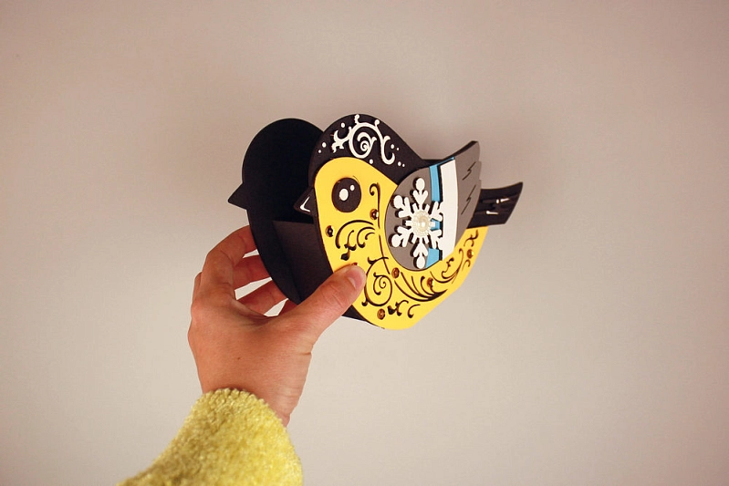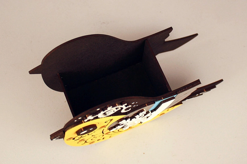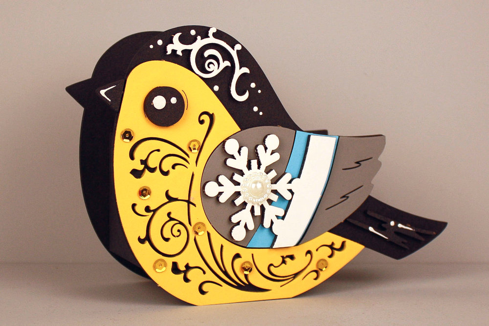 ПУ772-02-5016 Подарочная упаковка "Зимняя птица" (19*7,5*13,5) МДФ, окрашен., оформл., Черный-желтый, 1 шт.