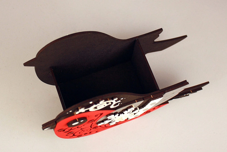 ПУ772-02-5006 Подарочная упаковка "Зимняя птица" (19*7,5*13,5) МДФ, окрашен., оформл., Чёрный-красный, 1 шт.