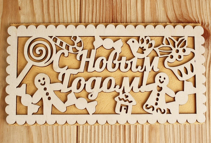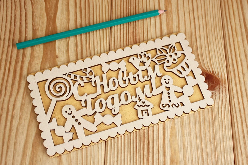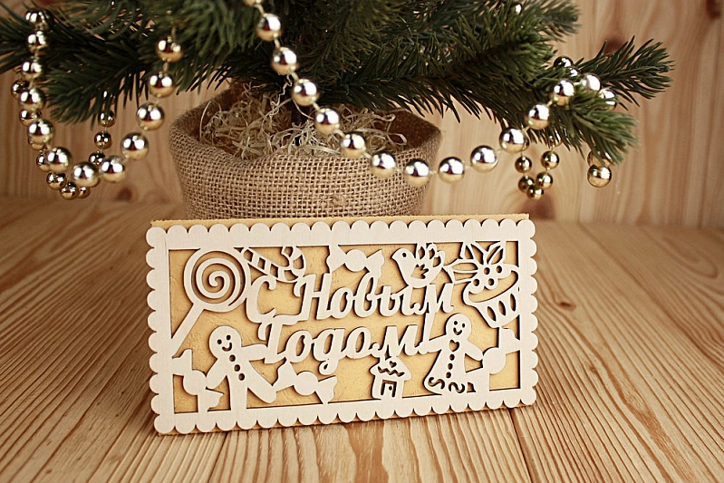 Подарочный конверт "Пряничный" (9,2*17,5) Фанера 3мм, картон, оформл., Желтый, 1 шт.