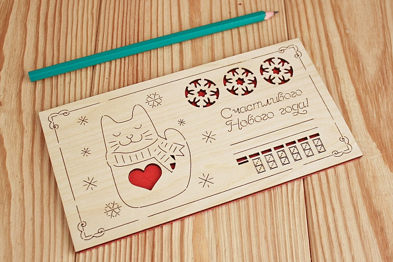 Этот очаровательный подарочный конверт станет прекрасным дополнением к вашему новогоднему подарку! Изготовленный из качественной фанеры толщиной 3мм и прочного картона, он не только красив, но и надежен. 🎁
